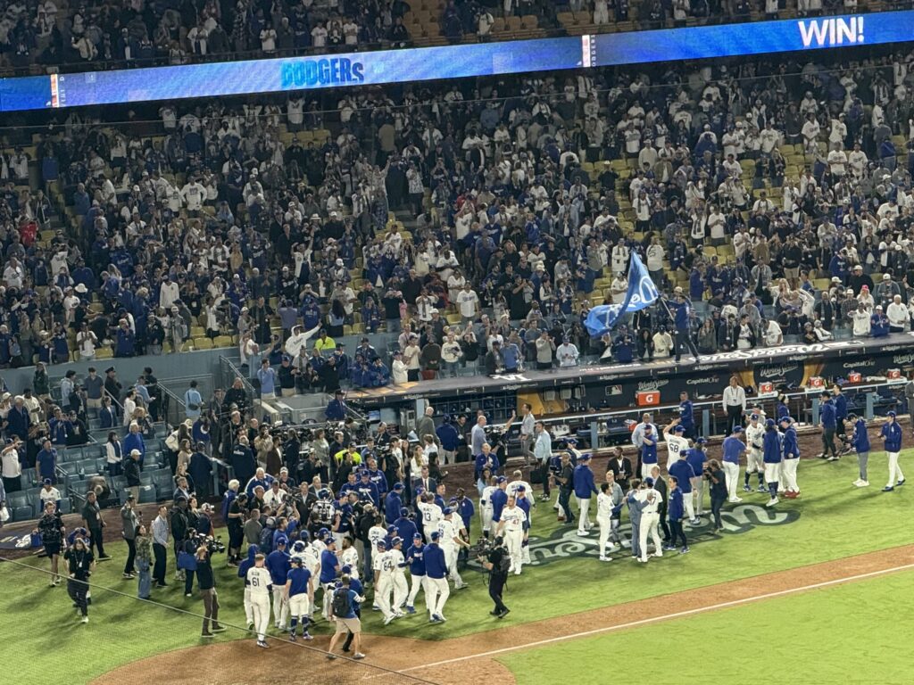 - I would say that almost 75% of the fans were still in the stadium when the game ended, and the only people that I saw leave were families with small children. Great job, Dodgers fans!